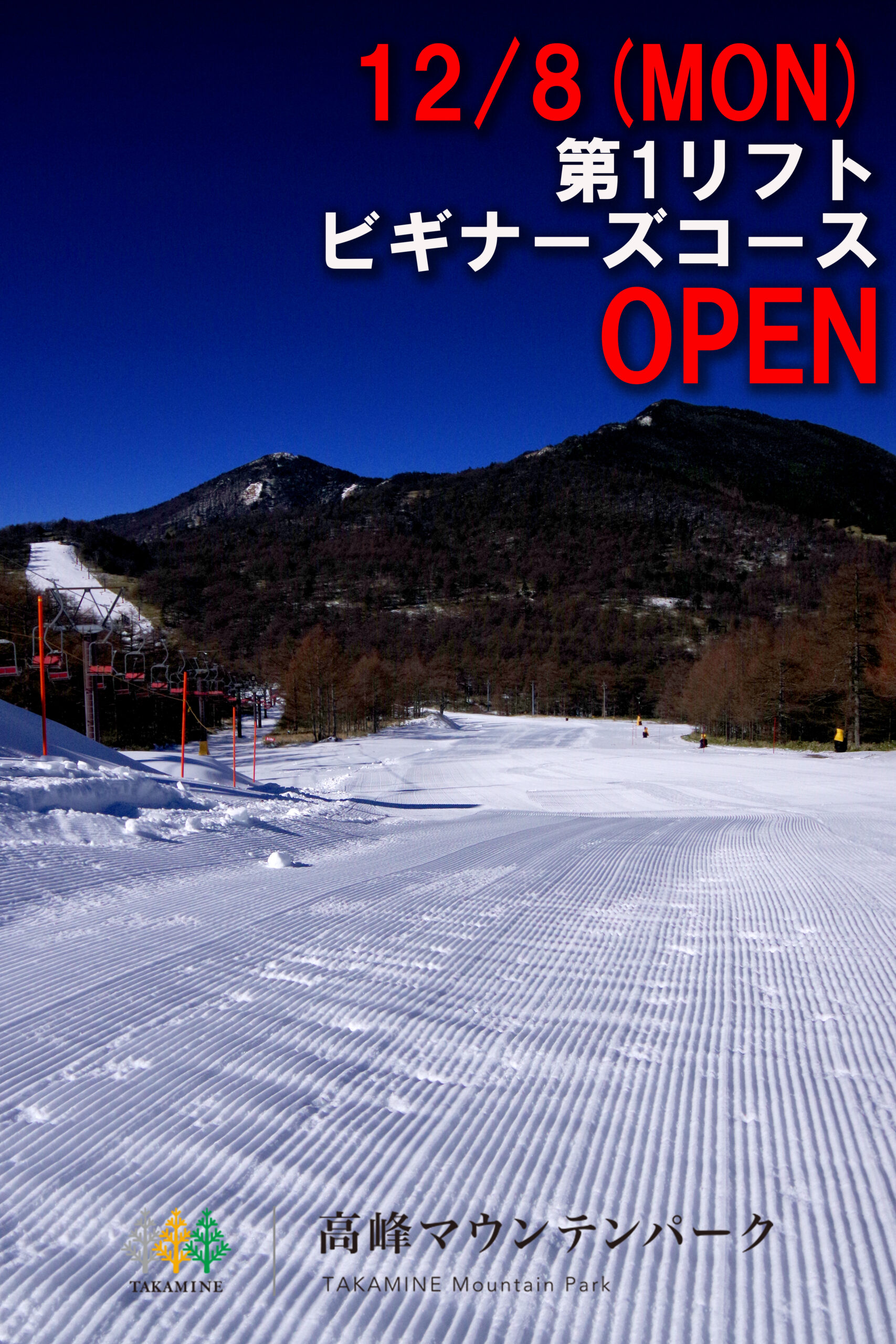 お待たせしました。天然雪の恩恵もあり、明日12/8(月)より第1リフトビギナーコースOPENすることが決定いたしました。