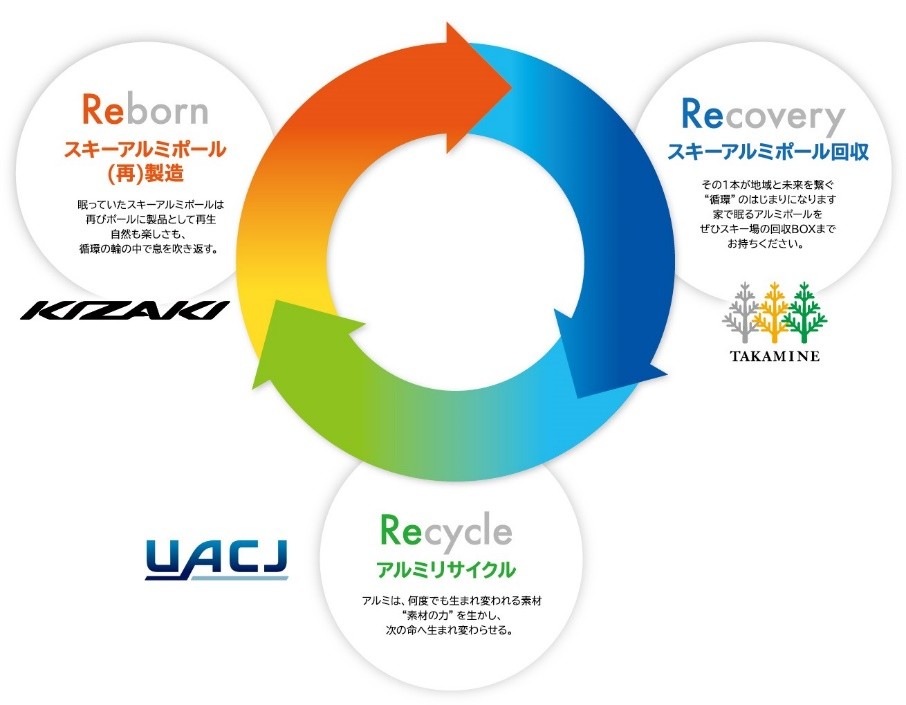 株式会社アサマリゾート、株式会社キザキ、株式会社UACJの3社は、アサマリゾートが運営するスキー場「高峰マウンテンパーク」において、使用済みスキーアルミポールを回収し、新たなスキーポールへと再生する水平リサイクルの実証実験「Re-ALoop Action(リアループアクション)」を今シーズンより開始し致します。