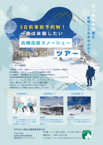 冬山はきちんとした装備が必要ですが、そんな装備までレンタル出来てガイドと一緒に登れるツアーがございます。